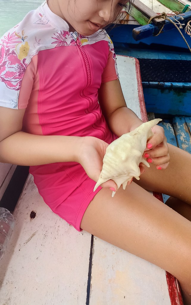 The minute I set foot on the island, I was really there, present, not lost in my thoughts as I often would be. I think THAT is the magic of nature: a combination of beauty, dramatic scenery, and ruggedness – all traits that made easy to disengage from daily worries and routines. Those are the magic that I keep finding whenever we travel to nature. The change of scenery and activities have always been successful in leaving me feeling wowed and renewed. As we sat back on the boat to continue our trip, our guide jumped back into the water to pick up a big shell and gave it to Tori. A gift from the sea. A memento from this magical place.