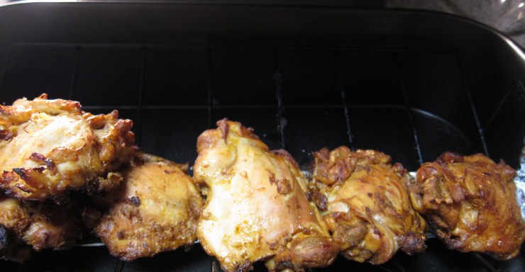 Set oven to broil. Place the chicken thighs on an oven rack set over a tray (so that any leftover juice has a place to go). Broil each side for 4-5 minutes until the color turn to golden brown. Be careful, it’s super hot!