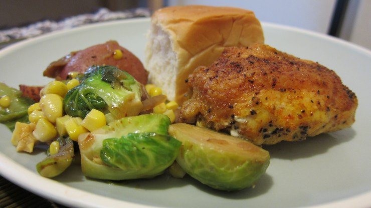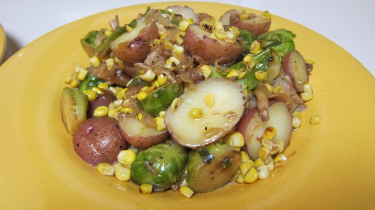 - Add Brussel sprouts and cook until they turn a little yellowish/brownish