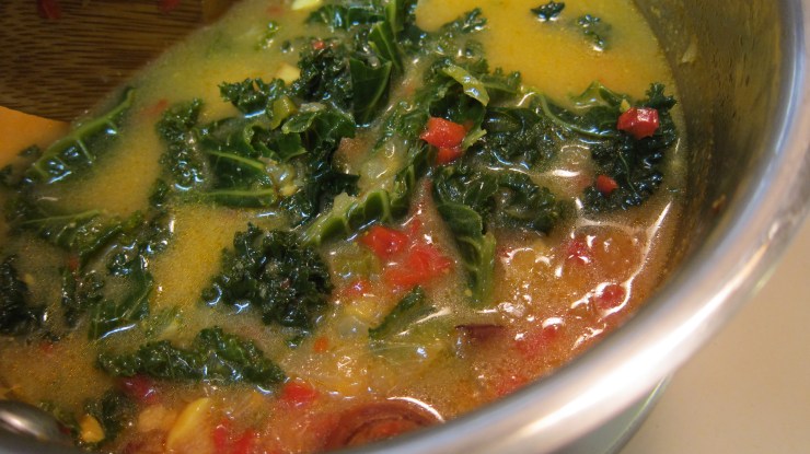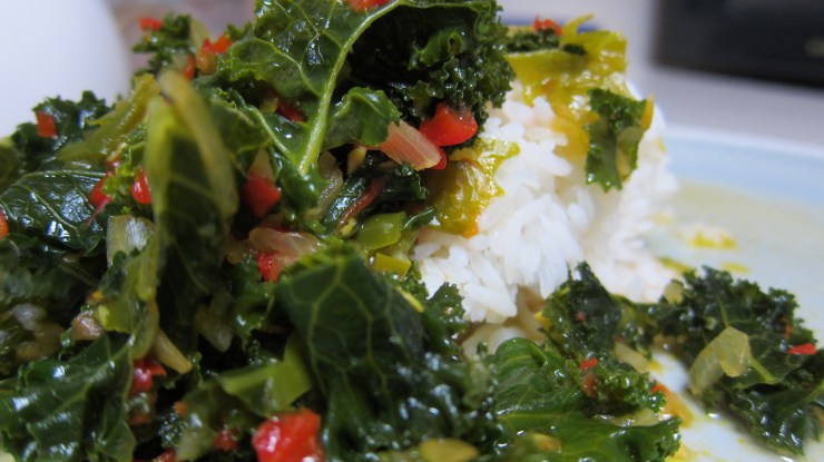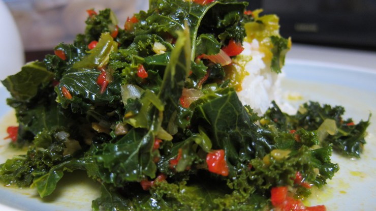 This entry was originally titled Kale Braised in Coconut Milk and was published back on January 26, 2012. Since then I have tweaked the recipe and arrived at a point where I could say, “This is even better!” So here it is, dear readers. Let’s turn the hardy green leaves into a tender and flavorful dish.