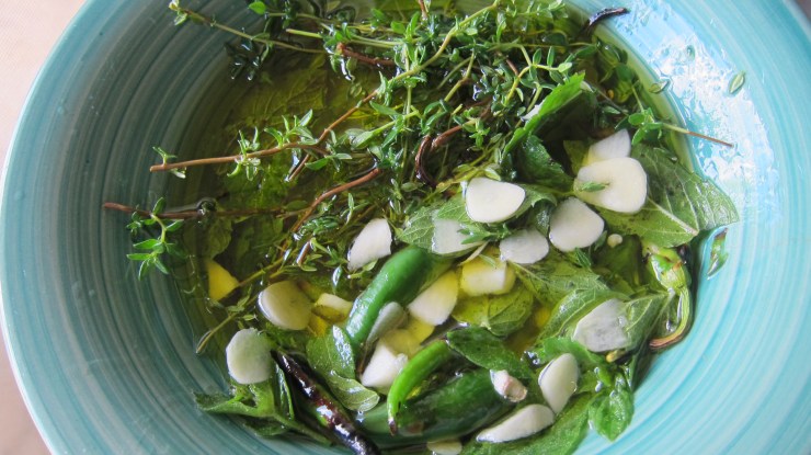 - 10 hot finger peppers (finely chopped)
