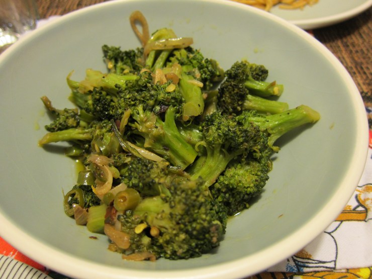 - Stir and mix the broccoli with the olive oil-anchovies concoction. Add black pepper. Cover the pan, lower the heat, cook for another three minutes (until the broccoli become soft), and then turn off the heat. Let the broccoli stay in the covered pan to soak the olive oil, anchovies, garlic, and peppers for at least half hour before serving. (The original recipe calls for 2 hours of cooking over low heat, but I find that my broccoli gets soft enough after the blanching, then the three-minute cooking with anchovies, and the half hour of resting in the covered pan. I think the heat gets trapped and continues to cook the vegetable for a while.)